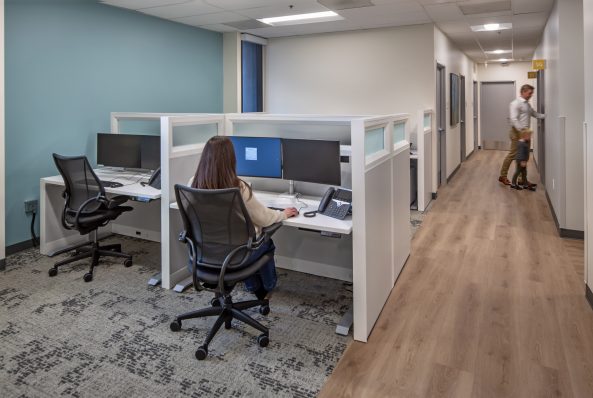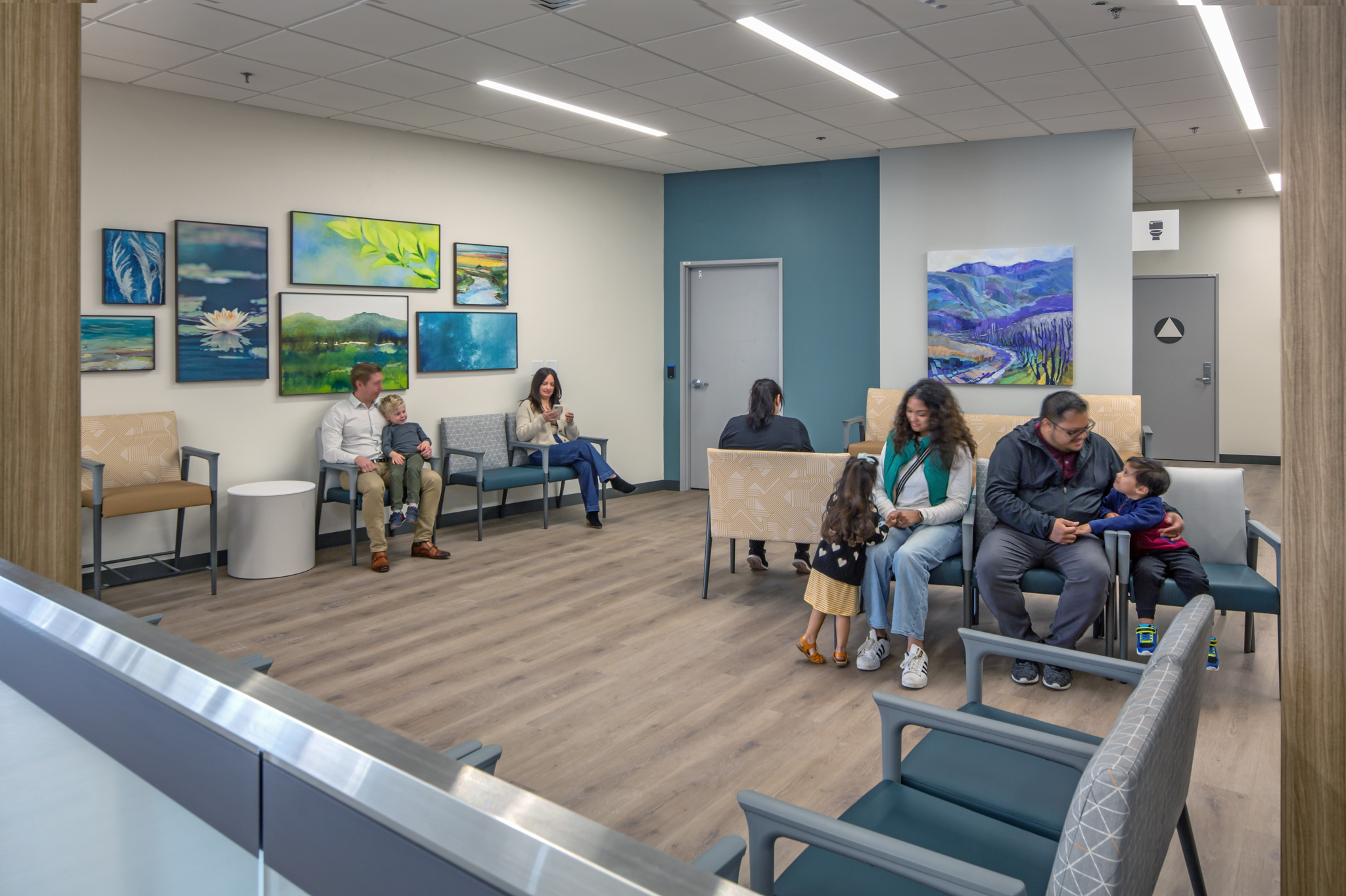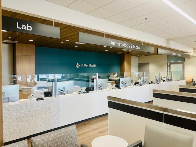 The renovation involved extensive demolition and fully reimagined interior featuring new finishes, artwork, and furniture that reflect Sutter Health’s latest branding and placemaking standards. A spacious, centralized reception and waiting area serves as a welcoming hub, designed to enhance patient comfort and streamline clinic operations.